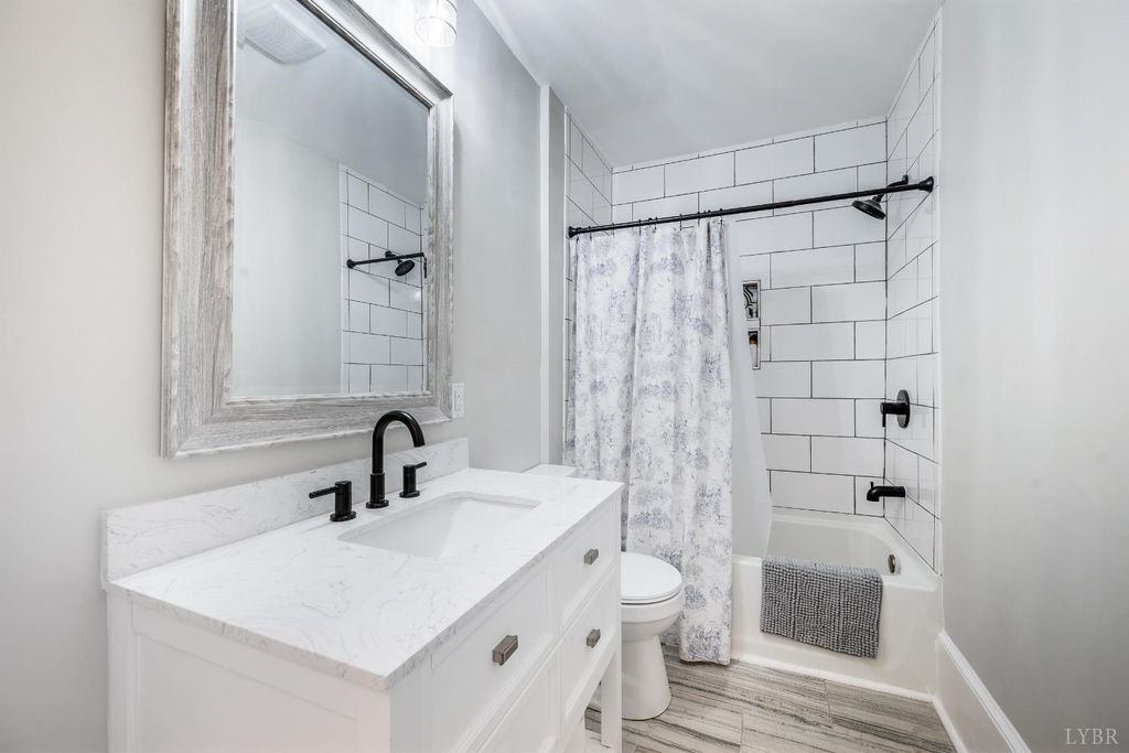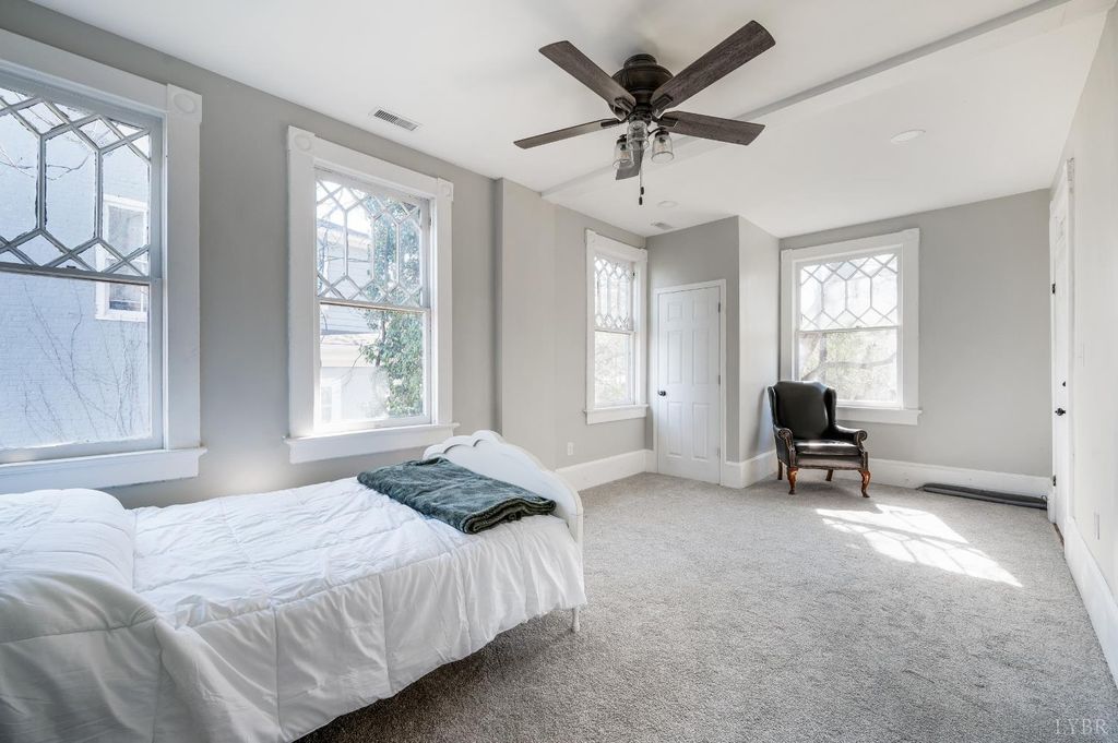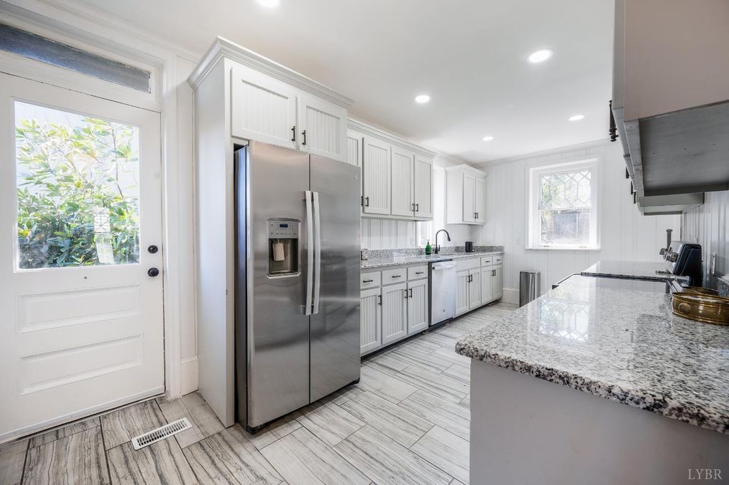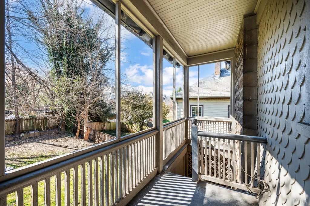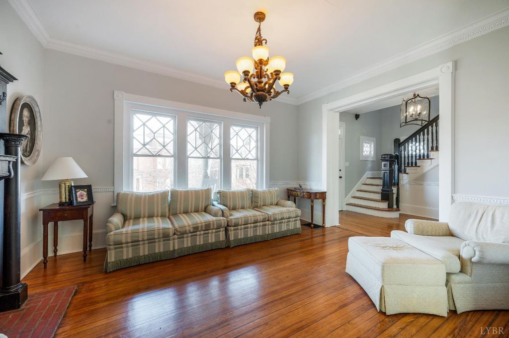 Perched atop Federal Hill in Downtown Lynchburg, this home is a unique mix of Tudor and Queen Anne styles with it's elaborate shingle work, block base, and ornate woodwork. Sitting above the street gives you privacy, all while being seated right within walking distance of all the activities and shops of Downtown. The gracious foyer welcomes you in with its intricate original staircase and heart pine floors and leads you into the large living room and dining rooms with completely unique original windows. All of these rooms are so bright, you'll be surprised when there aren't even lights on! The large updated kitchen features modern cabinetry, granite counters, stainless steel appliances and leads out to your fenced flat yard, the ideal urban oasis perfect for pets or kids! Upstairs you'll find 3 generously sized bedrooms, a custom tiled bathroom (in addition to the one downstairs) and an upstairs laundry! Don't miss the second story porch for views over the yard!