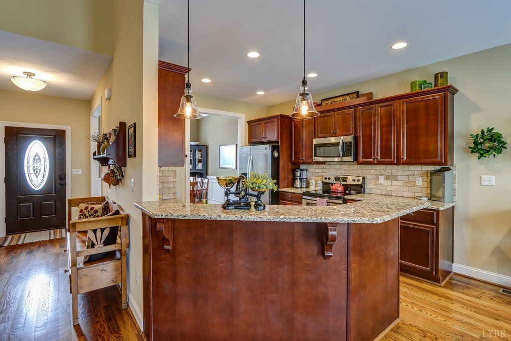 Welcome Home to this stunning Craftsman-style home in the highly sought-after neighborhood in beautiful Bedford County...mountain views and low county taxes. Open and functional layout designed for everyday living and entertaining. The main level features a welcoming foyer, formal dining room, and expansive great room with vaulted ceilings, built-ins, and a cozy fireplace. Adjoining kitchen is a true centerpiece with granite countertops, stainless steel appliances, abundant cabinetry, and a pantry. Main-level primary suite provides a peaceful retreat complete with a luxurious ensuite bath and generous walk-in closets. A laundry room and convenient half bath complete the main floor. Upstairs you'll find three bedrooms with spacious closets, a full bath, and a versatile bonus room that could be a fourth bedroom, den, or office. Plenty of Storage with a walk-in attic and additional storage areas. Spacious backyard with plenty of room for entertaining, pets, or play. Absolutely lovely!