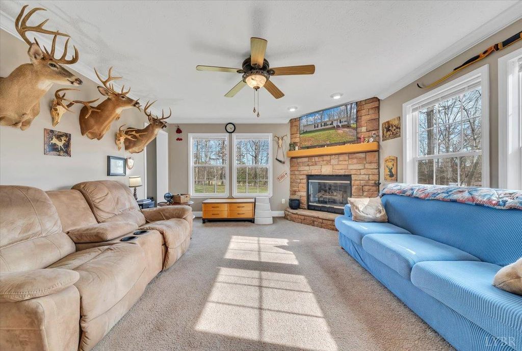 Effortless one-level living on over two acres in this exceptionally well-kept home. The LR flows into the dining area, creating an easy, connected layout for gatherings or everyday routines. The kitchen features stainless appliances, a center island that simplifies meal prep, a casual dining nook and breakfast bar. A den with a gas log FP offers the cozy place to relax. Three bedrooms include a spacious primary suite with an attached bath showcasing a soaking tub, dual vanities and separate shower. A dedicated laundry room adds convenience. Enjoy the peaceful setting from the rear deck- perfect for outdoor dining or entertaining. The fenced yard is a nice spot for kids or pets to play. A newer 28x35 detached garage/building offers excellent space for hobbyists, projects, or storage, plus a separate shed for lawn equipment and tools. An additional shed keeps lawn equipment and tools neatly organized. Privacy, versatility and move-in-ready comfort make this standout property a must-see!
