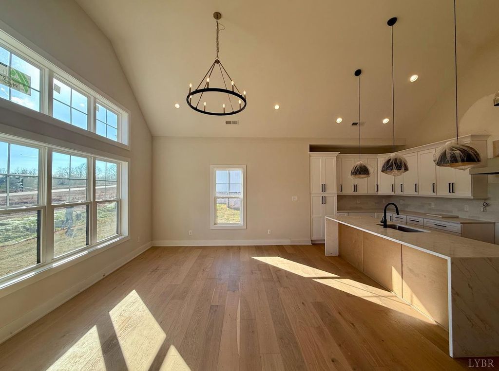 Welcome to Landen Downs, Campbell Counties newest upscale subdivision only minutes from Wards Rd. & Liberty University! Enjoy low county taxes and the sought after Brookville school district. All main level living w/ high-end finishes throughout. Vaulted foyer opens to the great room w/ soaring ceilings & floor to ceiling stone gas log fireplace. Gourmet kitchen boasts quartz countertops, gas range w/ double ovens, entertaining island & large cabinetry pantry. You will love this floor plan w/ three bedrooms, two bathrooms & a flex room that would make a great office or den. Master suite has vaulted ceilings, his & her walk-in closets & a lavish master bath w/ all tiled shower and soaking tub with tile surround. Hardwood flooring throughout, upgraded lighting package & oversized 2 car garage with extra room for storage. Outdoor spaces include covered front porch and covered back patio. Great price for all main level living w/ high end finishes in the county- call today for more details!