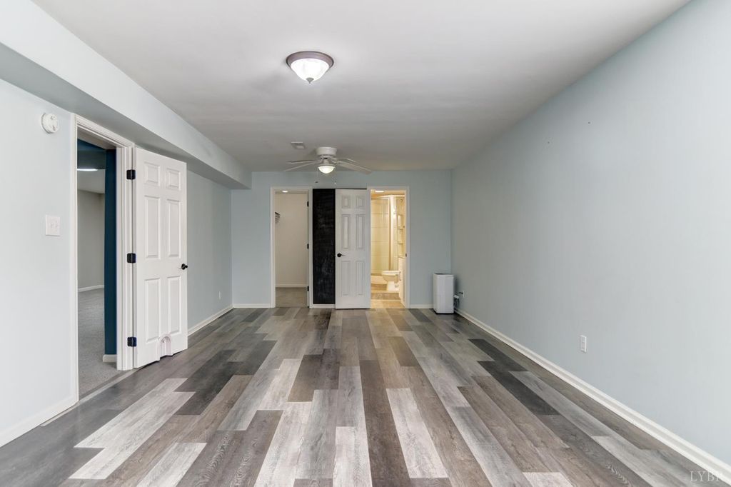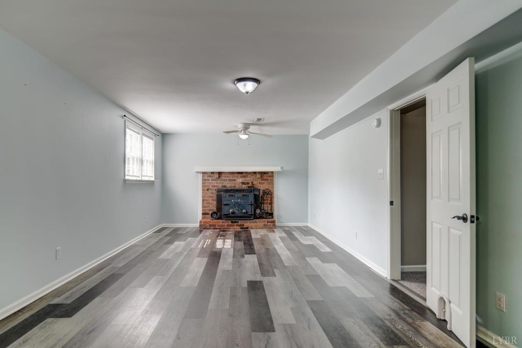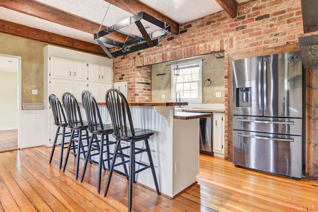 Envision residing in this stunning brick ranch situated in the heart of Amherst. The Great Room invites relaxation with impressive brick fireplace, high ceilings, and beautiful peg & plank floors, complemented by exposed beams that add warmth and character. Large kitchen island and farmhouse sink with modern faucet create a functional hub, complete with ample cabinets, refinished countertops, newer refrigerator & dw. A welcoming dining room, 3 bedrooms & 2 full baths complete the main floor, while a convenient pull down ladder grants access to lighted attic with decking for storage. Downstairs, a serene 4th BR retreat with private bath and walk -in closet awaits, alongside a cozy den, full laundry room, 1car Garage with workbench and EV- capable wiring. Unwind out back, enjoying your mountain view, covered rear porch, concrete pad is the perfect spot for a firepit and some Adirondack chairs, plus covered storage and potential chicken coop - a perfect haven with so many possibilities!