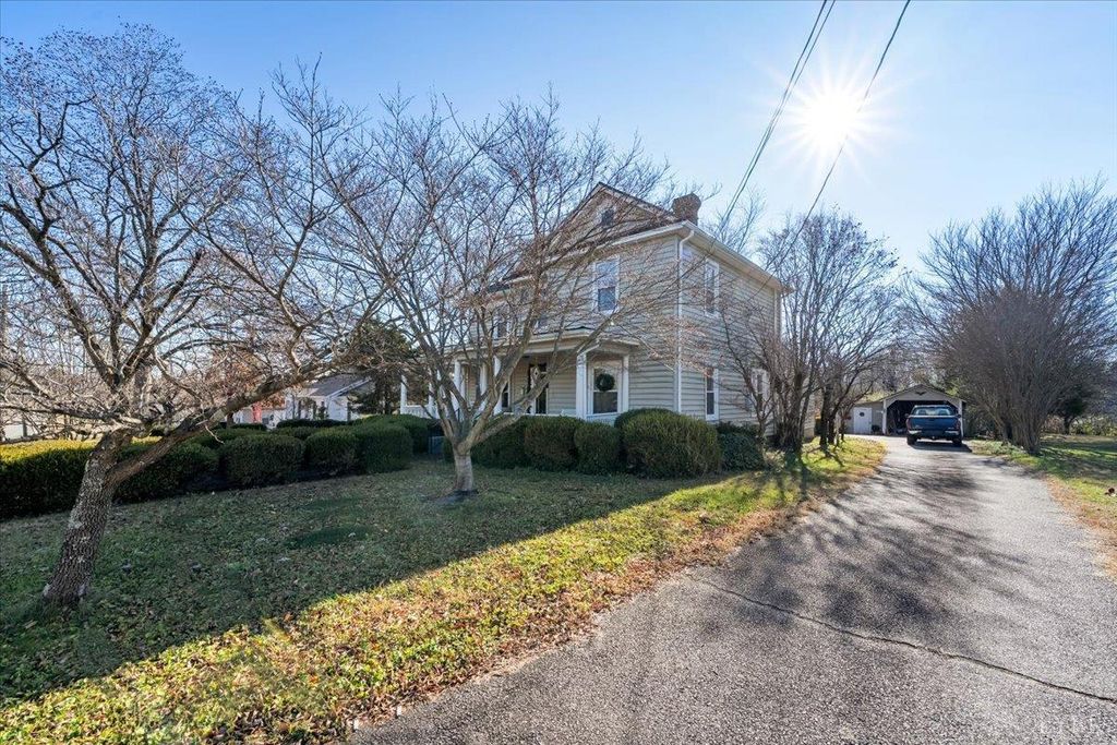 Welcome to 601 Henry Street a beautifully preserved 1917 Four Square that blends historic character with everyday livability. From the moment you step onto the inviting wrap-around porch, you'll feel right at home. Inside, the foyer opens to formal living and dining rooms featuring high ceilings and classic hardwood floors. The large eat-in kitchen offers a built-in buffet and plenty of space for gathering, while the cozy den with gas-log fireplace creates the perfect spot to unwind. There is a main-level primary suite with a private bath and adjoining office or flex space, plus laundry on the main floor for easy living. Upstairs, you'll find four generously sized bedrooms and a full bath. Situated on a level half-acre in town, the property includes a fenced yard, nostalgic Model T garage, carport, multiple outbuildings, and two driveways. Seller is willing to consider contributing to buyers closing cost with an acceptable offermaking this an even more attractive opportunity!