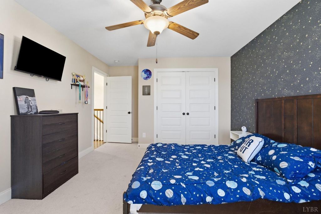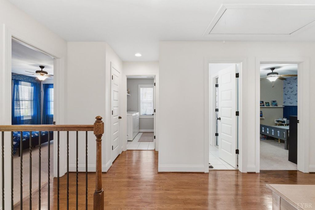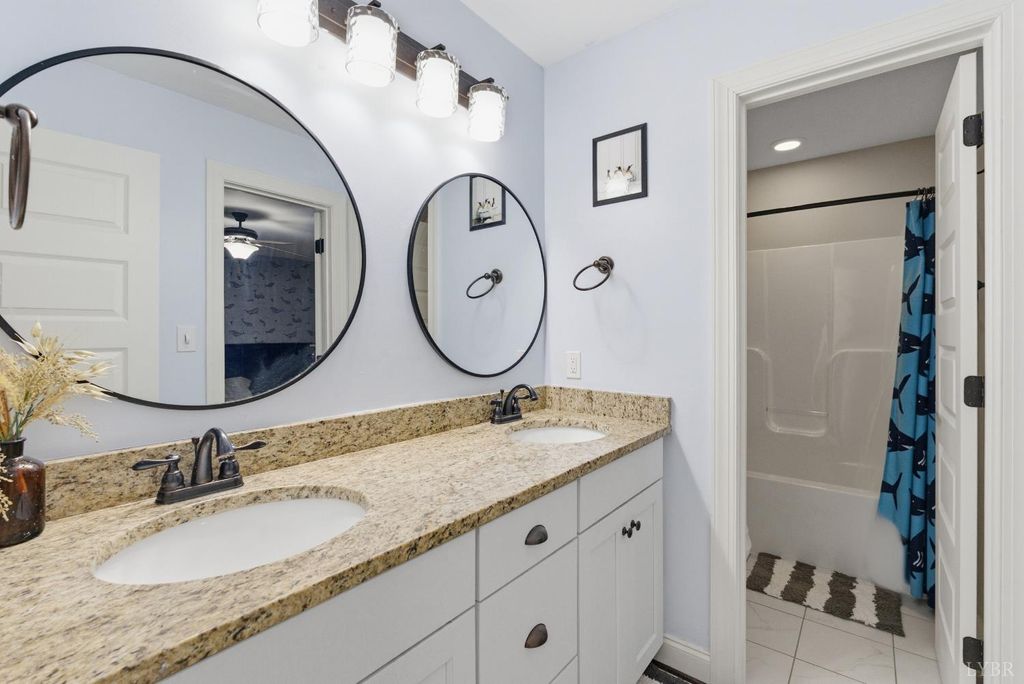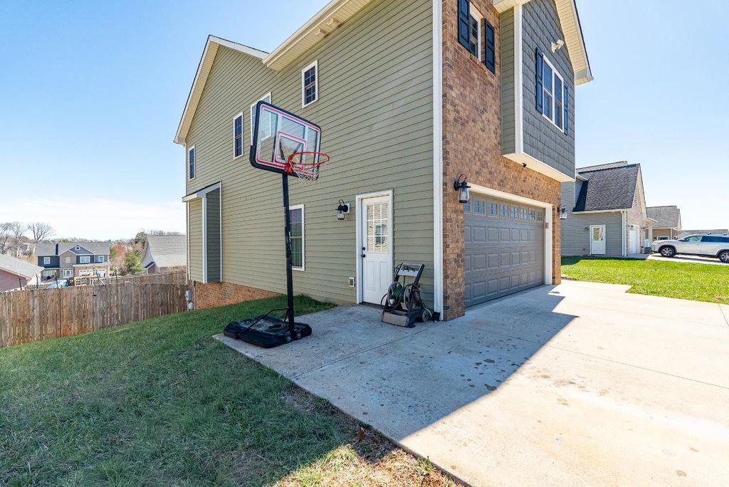 Located in the desirable Leesville Estates neighborhood, 303 Benchmark Drive offers a modern aesthetic paired with the benefit of low Campbell County taxes. The main level features a beautiful kitchen with sleek soft-close cabinets and high-end finishes that flow perfectly into the living spaces. Outside, a flat, fully fenced backyard provides a private and secure space for play and entertaining. The second floor hosts four spacious bedrooms, including a primary suite upgraded with beautiful new engineered hardwood floors and soundproofing underneath. Large walk-in closets are found in almost every bedroom, ensuring ample storage for the whole family. For added flexibility, the finished basement serves as an expansive den or a private guest suite, complete with its own full bath and easy access to the two-car garage. This Evington home is a rare find, combining contemporary style with practical updates in a quiet, sought-after community. Schedule your own private showing today!