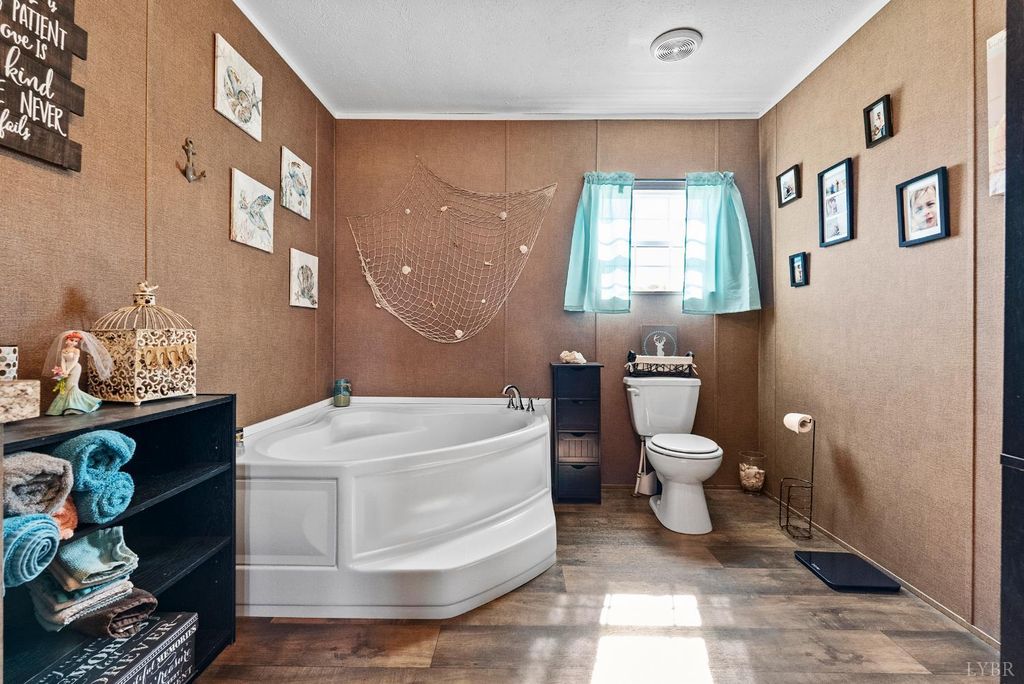 If you've been dreaming of space and simplicity, this one checks all the boxes. Nestled on nearly 8 acres just 10 minutes from Rustburg and 20 minutes to Lynchburg, this home offers easy main-level living with 3 bedrooms and 2 full baths. Enjoy an open-concept layout with a spacious kitchen island, plus room for a full dining table perfect for gathering. Step outside and take in the peaceful views, complete with rose bushes, a grapevine, and space to garden. Additional highlights include a 10x20 storage shed, new vinyl plank flooring, and a new hot water heater. Privacy, convenience, and charm all in one.