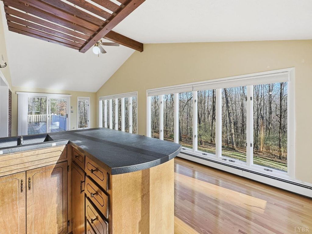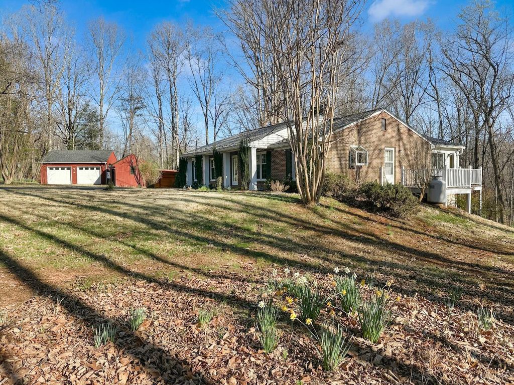 Remarkably well-maintained brick ranch with almost 3,000 sqft of living space on a large 3.12 acre lot. This 3 bedroom, 3 full bath home features a stunning vaulted ceiling sunroom looking out to a private wooded back yard. Fireplaces in the living room, in the eat-in kitchen, and one on the terrace level with a gas log. The high-end standing seam metal roof is made of special material that does not get hot in the sun. Custom granite countertops throughout the kitchen and main level bathrooms. The primary suite offers private access to the back deck. All 3 bedrooms closets have custom cedar shelving. Just off the kitchen is a side entrance to a grilling deck. Never go cold with the toasty radiant heat or use the heat pump. Detached 2 car garage offers coded access and a walk out door. Circle driveway. The front porch has a winter time view of Tobacco Row Mtn. Schedule a showing now to see the many blooming daffodils and the yellow forsythias lining the road.