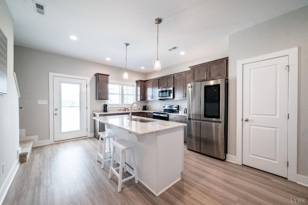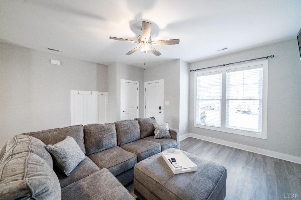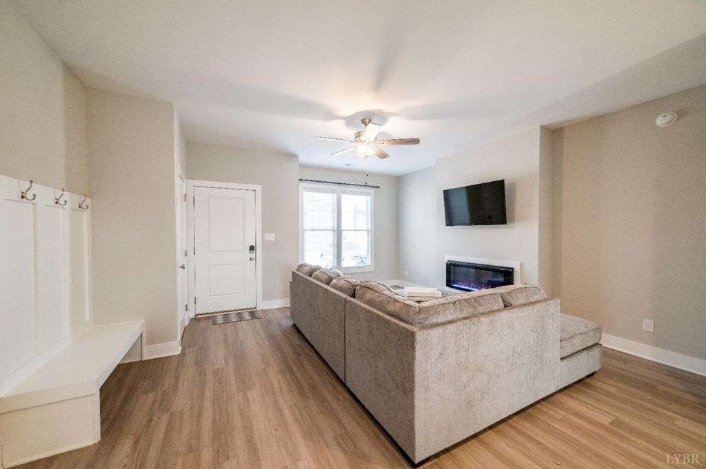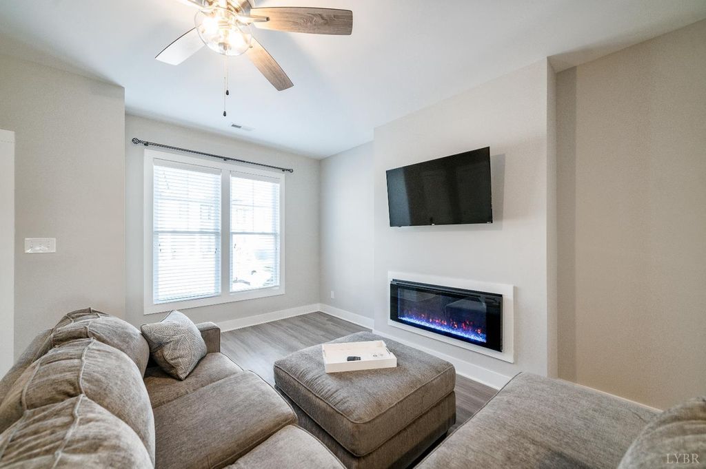Experience the pinnacle of sophisticated living in the prestigious English Commons. The open-concept layout flows into a gourmet kitchen featuring granite countertops, premium cabinetry, and a center island tailored for entertaining. An ambient electric fireplace anchors the living space, complemented by high-end finishes and luxury flooring throughout. Upstairs, two expansive primary suites offer private ensuite baths and generous walk-in closets, providing a true sanctuary. Step outside to a private patio with additional storage or indulge in resort-style amenities including a clubhouse, pool, and dog park. Positioned minutes from Liberty University and Lynchburg Regional Airport, this home offers an elevated lifestyle and exceptional rental potential. Turnkey and refined welcome to the new standard of luxury.