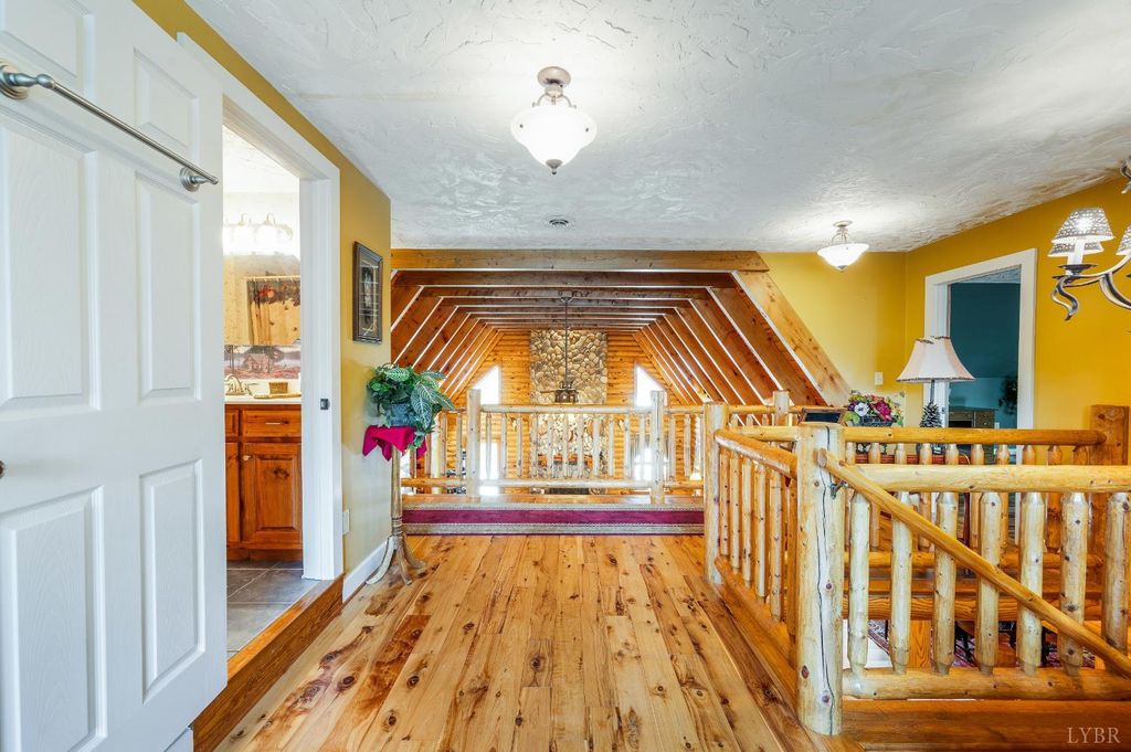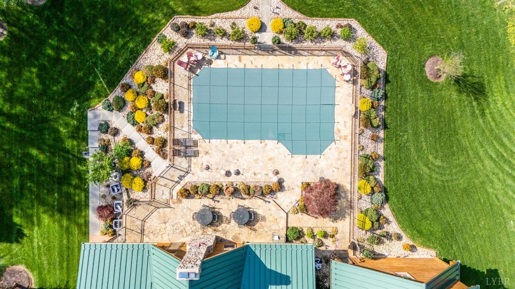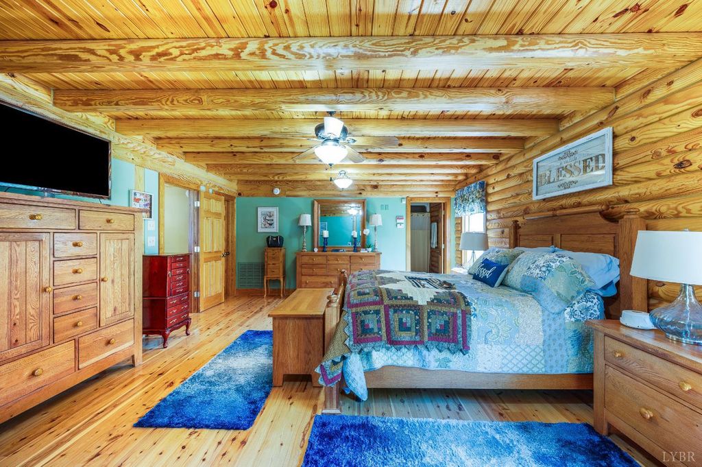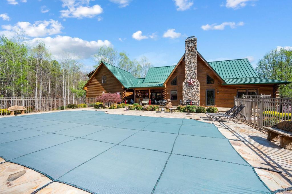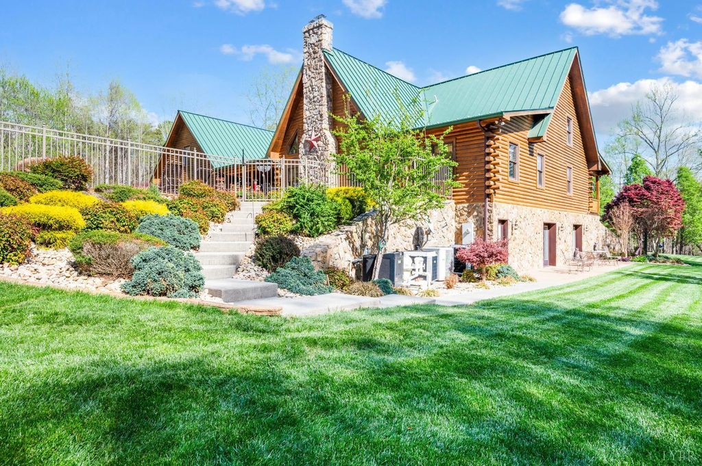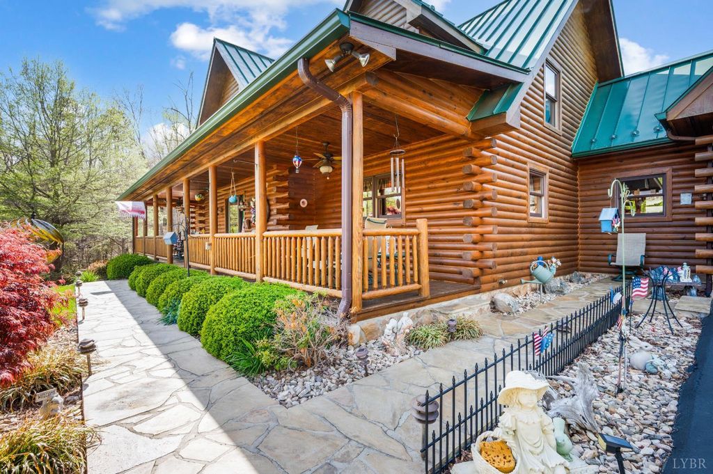 Experience a private mountain retreat set on 130+ acres. This stunning log home offers over 6,000 sq ft of space. The kitchen features stainless appliances, a large island with cooktop, and a sink overlooking scenic views. The great room boasts soaring floor-to-ceiling river rock fireplace with custom mantleperfect for entertaining. The main level also includes an office that could serve as an additional guest bedroom. The spacious primary suite offers a large walk-in closet and a spa-like bath with Jacuzzi tub. The walk-out basement includes a finished area, full bath, patio access, and abundant unfinished space for future expansion. Enjoy the covered back deck with ceiling fan and a beautifully landscaped, fenced gunite pool area. Gated wrought iron fencing entrance, attached & detached garages, and endless acreage ideal for recreation. Convenient to Lynchburg, Roanoke, Smith Mountain Lake, and The National D-Day Memorial.
