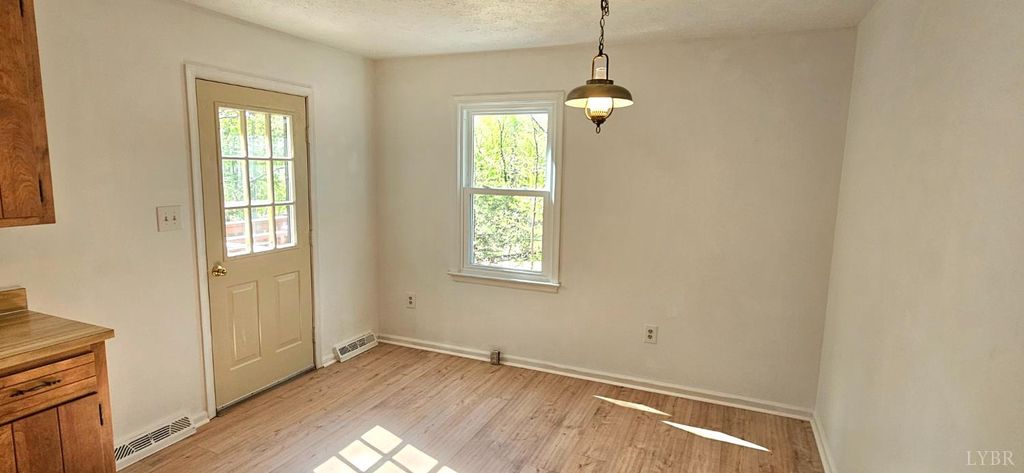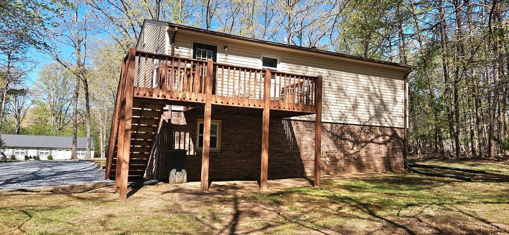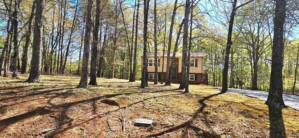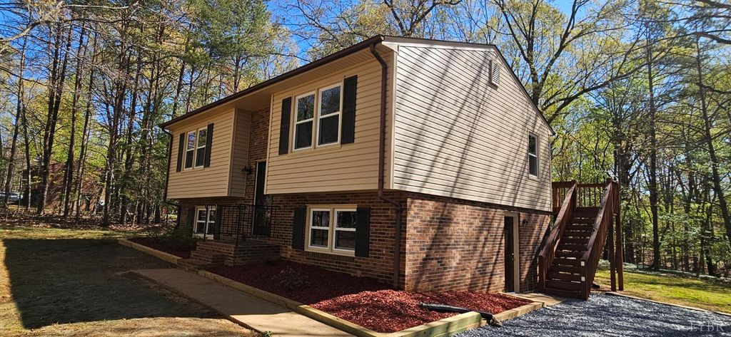 Move in, sit down !! Really nice,clean home in the J.F school district on 1.49 acres.Offering a pretty wooded homesite, & all new in last 6 months ,architectural roof,vinyl insulated windows,vinyl siding,carpet & LVP flooring.interior paint ,basement entry door,deck storm door,smoke/carbon monoxide detectors,gravel on the double width driveway,Kohler glass shower doors,toilet,bath sink faucet,landscaping timbers & mulch,ceramic top range.Ceiling fans have been installed in the last 2 yrs.The main level has a large LR, huge EI kitchen w/ door to deck, a full hall bath + the primary & 2nd bdrm. The walkout terrace level has an office (no HVAC or finished ceiling) a RI bath & room to expand .Septic was pumped 1-6-2026 (receipt available).Heat pump and hot water heater approx 2013 .Heat pump serviced every yr by Seven Hills Heating.Whole house fan. The house & approx .6 acres are in Bedford County & .9 acres are in Campbell County.Real estate taxes are paid in both counties