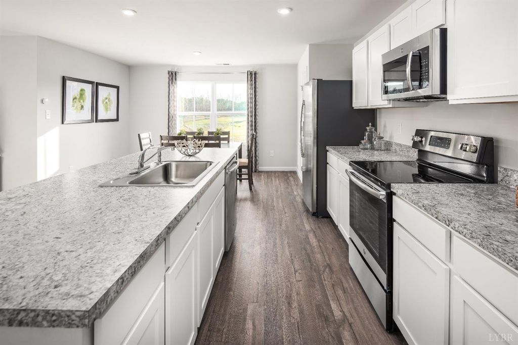 Introducing the Marigold floorplan now available in the desired Grove Hill community with walkout basement and private rear 8x16 deck. Walk into an open concept design with dedicated first floor flex space and large great room that flows into a chef's kitchen with oversized island and dining room. Included with LVP throughout, stainless steel appliances and upgraded cabinetry. Upstairs you'll find 4 bedrooms, a loft, linen closet, and laundry room with washer and dryer included! Situated on a quiet street in the heart of Lynchburg overlooking a creek and tree line, this home is move-in- ready and won't last long! Schedule your tour today and ask about financing incentives through our in-house finance team!