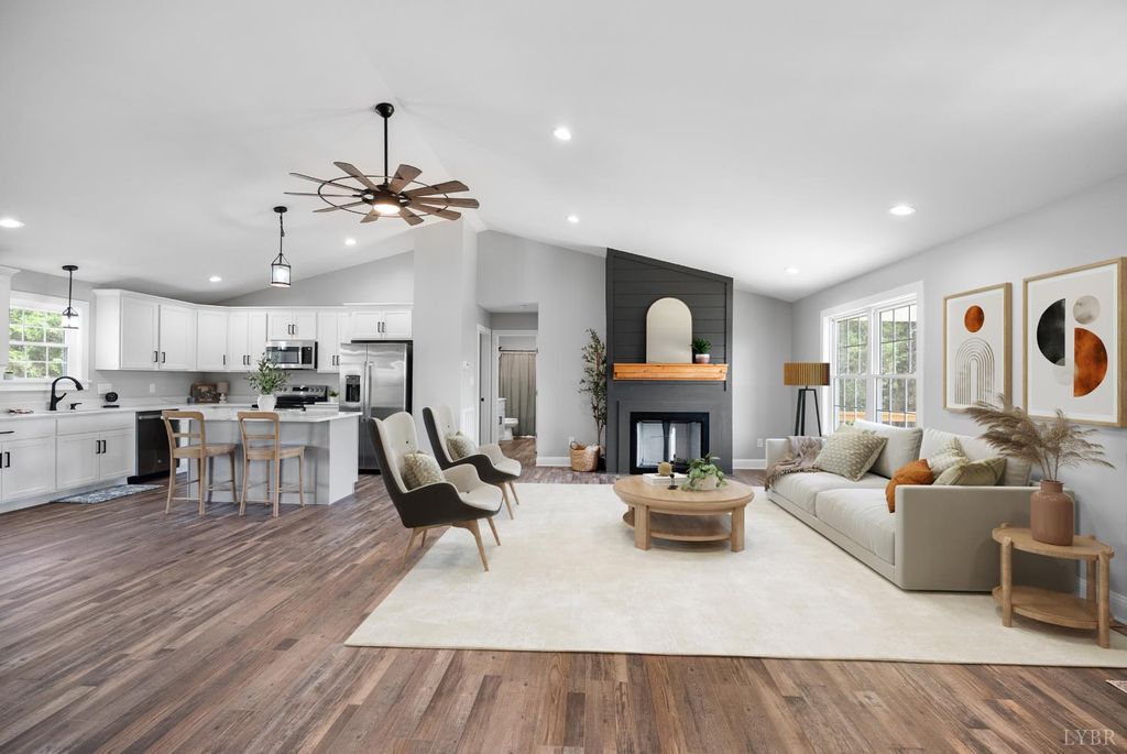 Open House Saturday 4/18 (11-1) New construction on 1.5-acre lot in Stoney Creek subdivision, located on a private cul-de-sac in a walkable community. Convenient to Route 29 with easy access to Lynchburg and Charlottesville. Minutes from local grocery stores and restaurants. Top-notch craftsmanship throughout. Main-level living with primary suite featuring large bath, double vanity, and walk-in closet. Open floor plan with spacious kitchen, island, vaulted ceilings, shiplap accents, and gas fireplace. Full unfinished basement offers 1,600+ sq ft for future expansion. Covered vaulted front porch and private covered rear deck. Enjoy beautiful sunset views over the mountains from the front porch. Privacy trees recently planted.