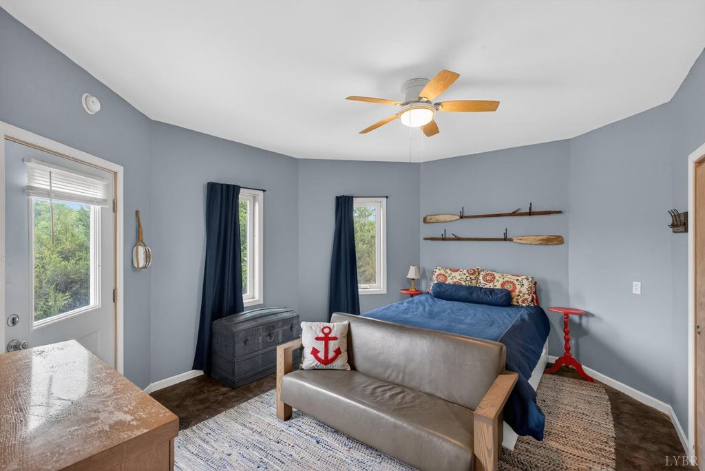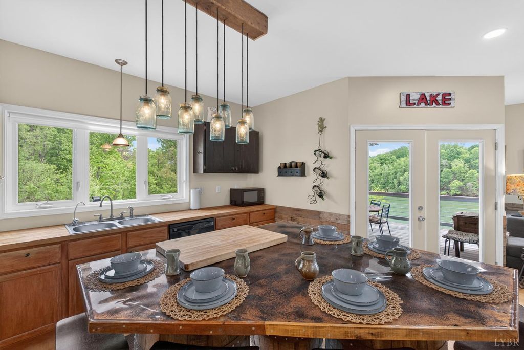 Experience this one-of-a-kind custom home on scenic Leesville Lake, offering approximately 615 feet of pristine waterfront on a private 5-acre lot. Tucked into the hillside, this thoughtfully designed home features a main-level primary suite and inviting living spaces perfect for entertaining, all with breathtaking lake views. A charming loft provides additional sleeping space, while the fully finished basement includes another bedroom and a versatile office currently used as a bunk room. Relax by the cozy gas-log fireplace or unwind with a drink at the custom wine bar. Whether you're seeking a peaceful getaway or a full-time residence, this exceptional property delivers the perfect blend of comfort, privacy, and natural beauty. Schedule your private showing today!