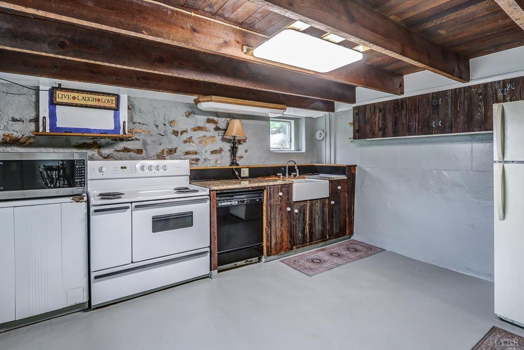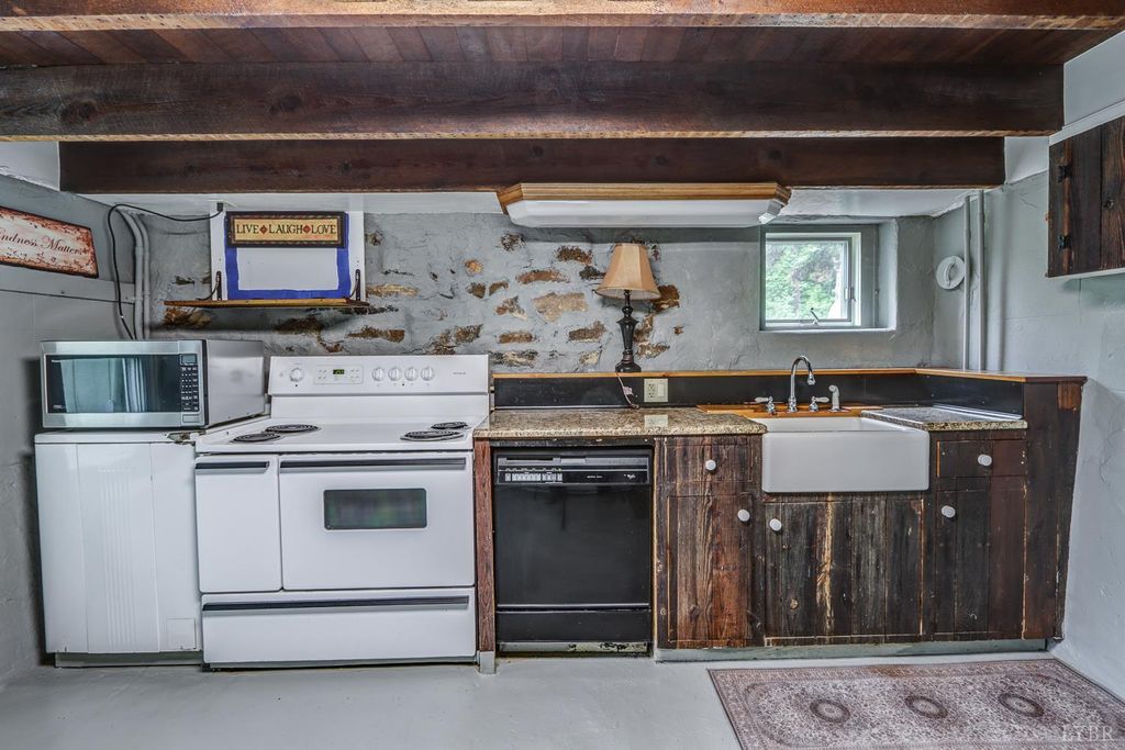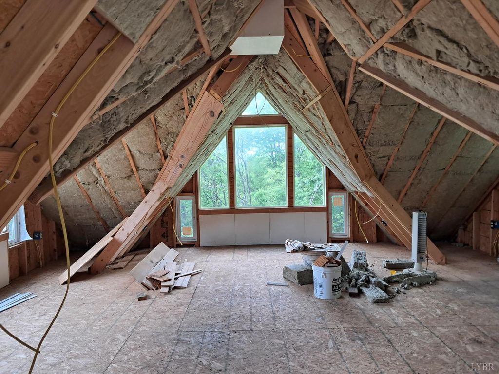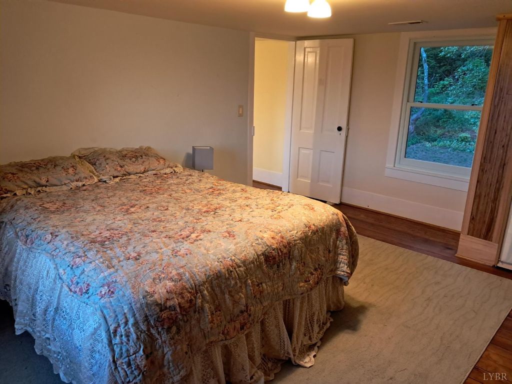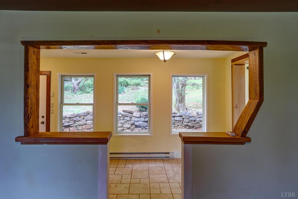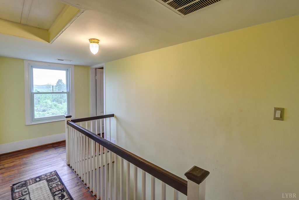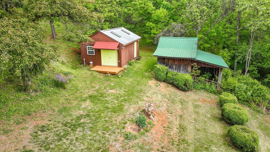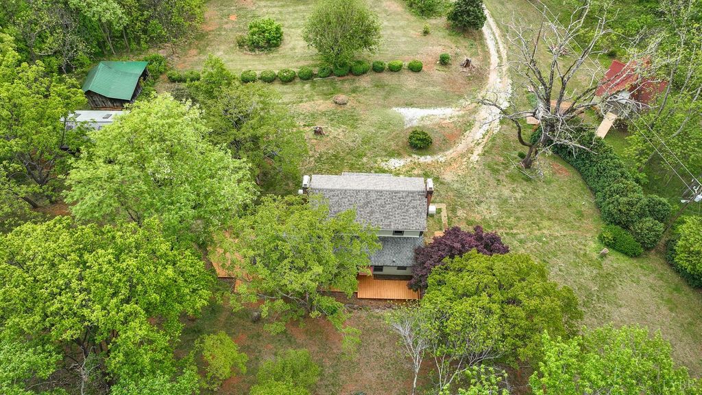 Private mountain retreat on 87.60 acres in Nelson County, just minutes from Lovingston. Originally built in 1872, this character-filled two-story home with basement offers approx. 1,972 square finished feet, 3 bedrooms, and 1.5 baths. Spacious living room and sunroom capture the surrounding mountain views. English-style kitchen with appliances conveying opens to a generous dining area. Two gas log fireplaces add warmth and charm. Generac whole-house generator and two large propane tanks convey. Outdoor spaces include a covered front porch and expansive side deck, ideal for relaxing or entertaining. 21x23 drive-through garage with loft plus three storage sheds. A portion of the property is subject to an open space conservation easement.